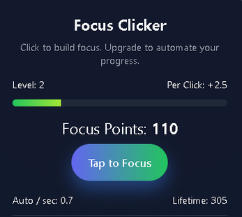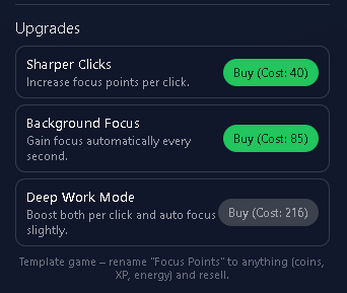 Focus Clicker – HTML5 Idle Clicker Template (Clean Base System)