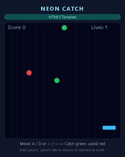## Neon Catch – HTML5 Template (Rebrand & Resell)