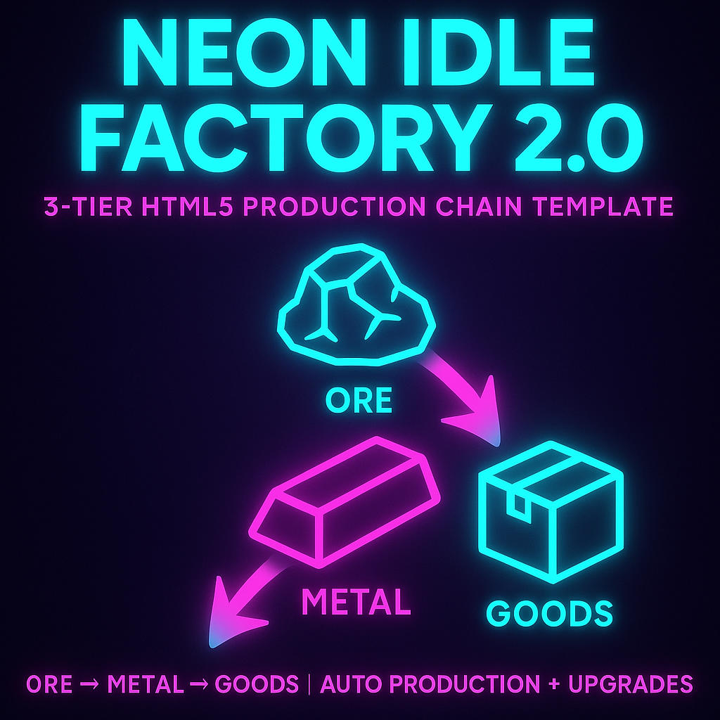 Neon Idle Factory 2.0 – HTML5 Production Chain Template (3-Tier Crafting)