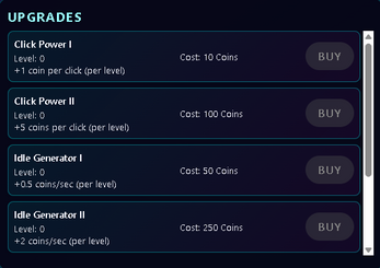 Use it as a base for clickers, idle RPGs, tower defense, or any game that needs an upgrade shop