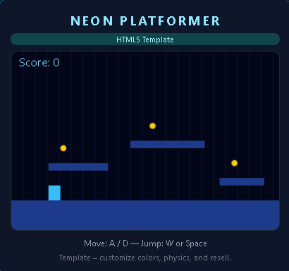 ## Neon Platformer – HTML5 Template (Rebrand & Resell)