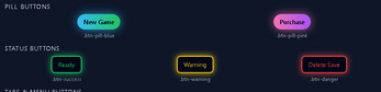 - Pill-style buttons (CTA / "New Game" / "Purchase")